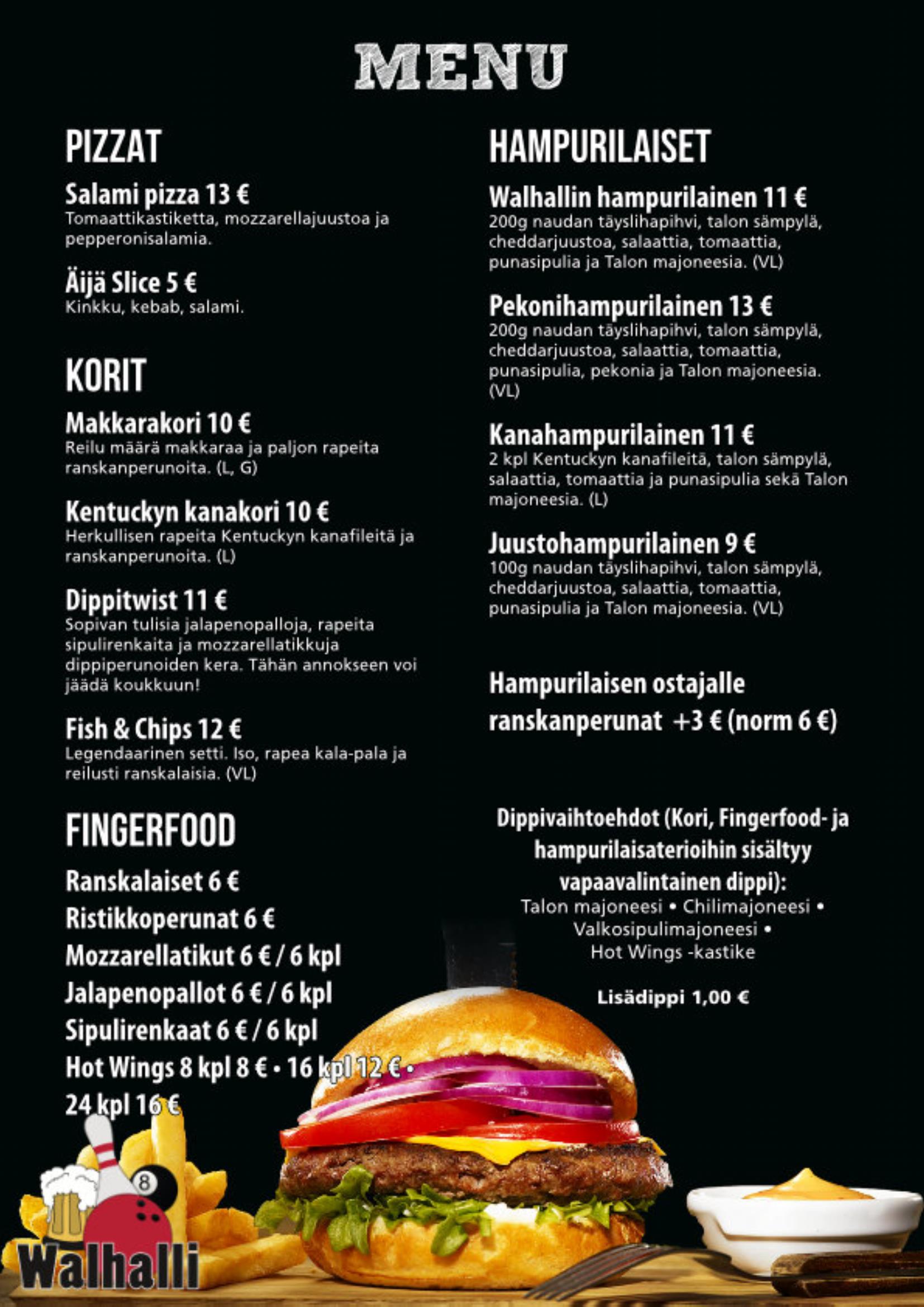 Walhallin baarin keittiöstä löydät purtavaa niin pieneen kuin isompaan nälkään.